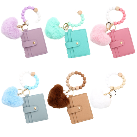 Novo pelúcia frisada pulseira chaveiro amor coração cartão saco